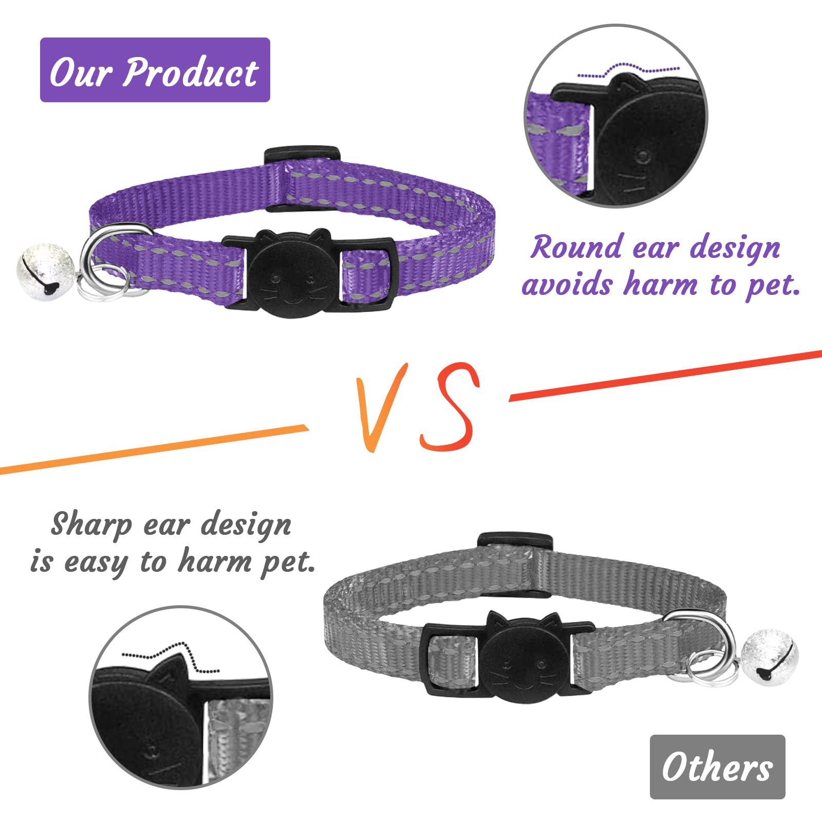 - 【Breakaway Buckle】Safety release buckle, which can be quickly released and easily removed, which is safe for your cat. Very suitable for daily wear. Each cat collar is equipped with a bell, you will know where your cat is and find it easily.