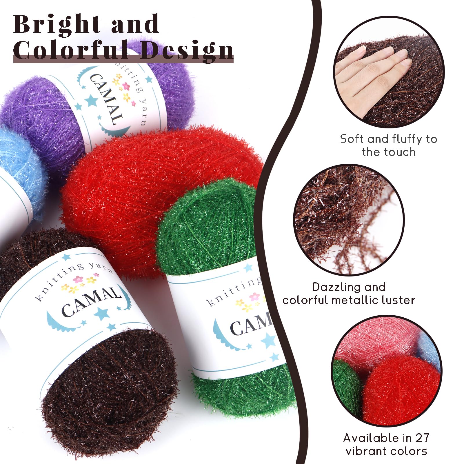 - đ«ăBright and Colorful Designă: Dazzle and colorful metallic shine, soft and fluffy scrub texture, can add a touch of glamour to your crafting projects, the main yarn is multiple silk threads are cross woven that sturdy and tough, fine faux eyelash texture design, can ensure its functionality while adding a touch of funny.