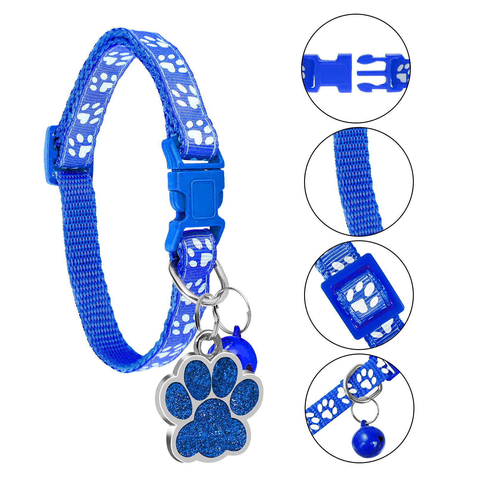 - Cat Collar with Name Tag & Bell: You will get 1*breakaway cat collar with bell and 1*glitter paw print custom pet ID tags for cats.