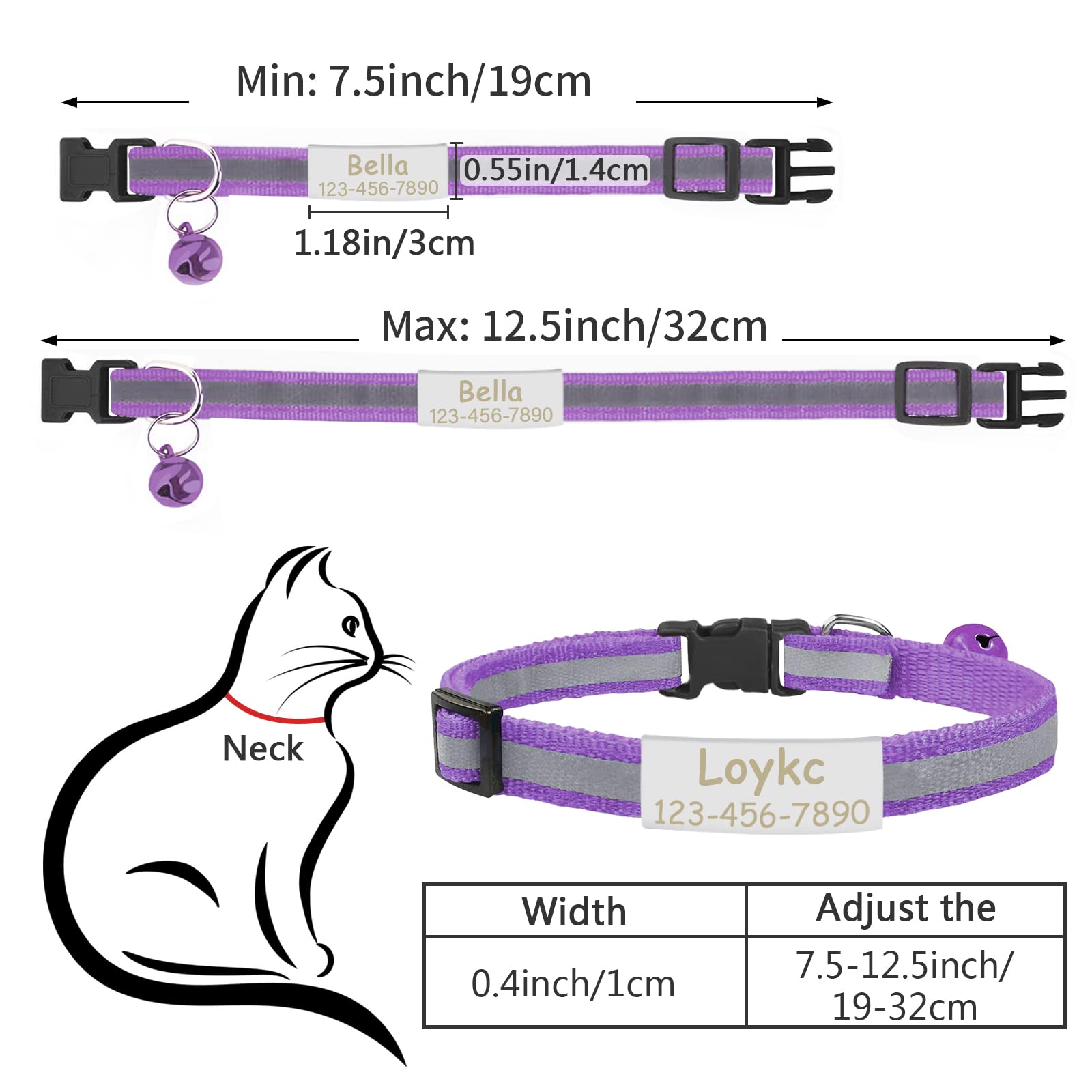 - Adjustable Size: The width of the cat collar breakaway is about 0.4 inches (1cm), and the adjustable length is about 7.5-12.5 inches (19-32cm). Please measure your pet's neck to get the correct size before placing an order.