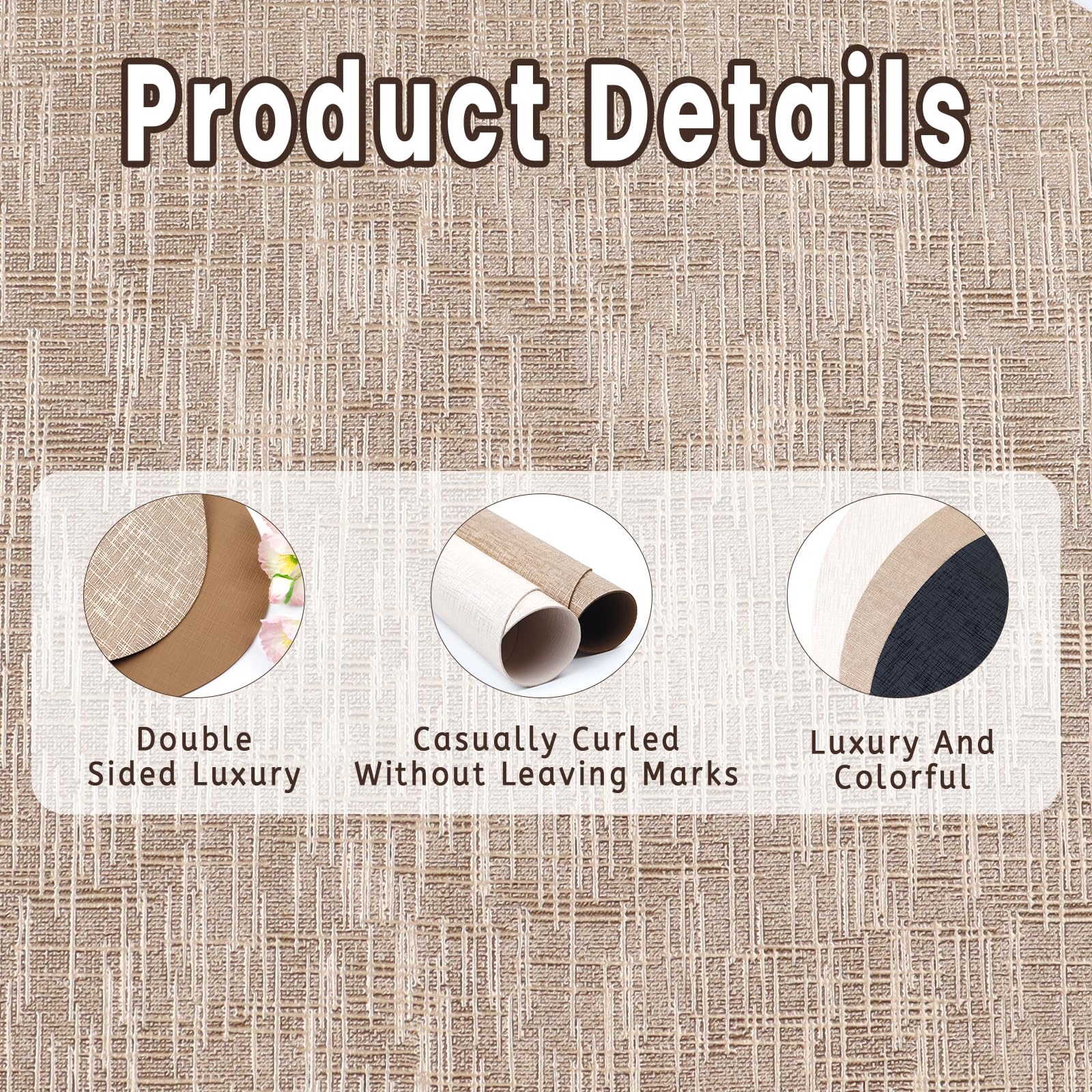 - FAUX LEATHER MATERIAL: Luxury leather placemats is made of faux leather, scratch-resistant and waterproof, the features dual-sided designs (metallic glossy + matte finish) for refined, adding a touch of charming texture to your dinner