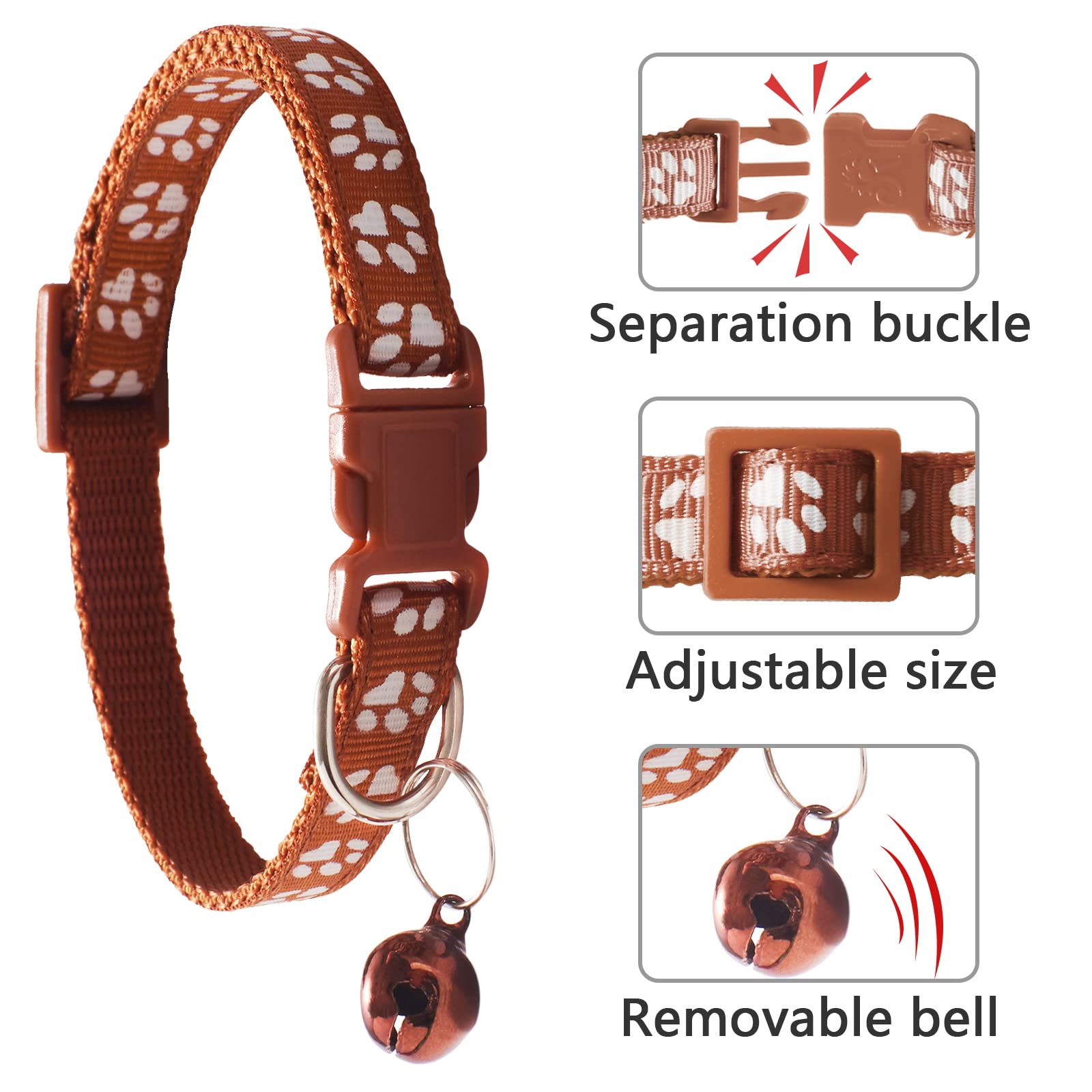 - Lovely Appearance: The kitten collar has paw prints that match your pet, making your pet more cute and charming. The material of the cat collar is polyester, making it comfortable for your boys and girls.