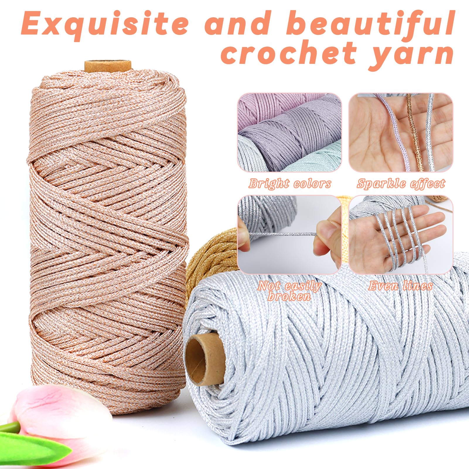- STYLISH AND VERSATILE: Sparkly yarn for crocheting uses a core-spun design, crocheting not separating during use, just the right amount of pearlescent luster, bright and gorgeous, whether used for crocheting or making macrame crafts, can be used to add a striking visual effect